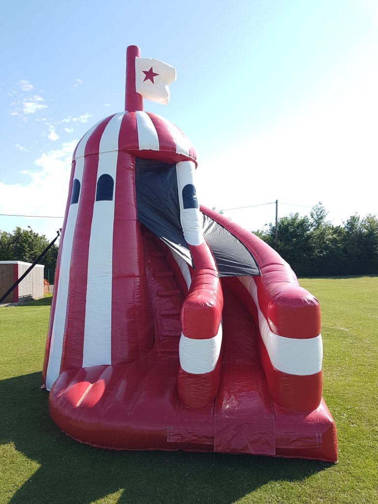We're excited to present this classic-looking helter-skelter inflatable slide, which is now available for hiring! With its vibrant colors design and classic appearance, this is sure to turn heads. It could even bring back memories as to when this was one of the most popular attractions at the fairgrounds. This inflatable is 23 feet tall, 18 feet wide, and 18 feet deep. Pegs, carpets, a blower, a rain covering, and all other essential equipment are included in the whole set up. TO AVOID DISAPPOINTMENT, BOOK NOW. 07966076349