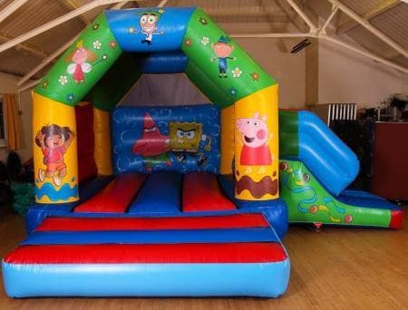 This lovely bright castle with slide is decorated with Dora, Ben and Holly, Spongebob Squarepants, Peppa and Fairly Odd Parents.