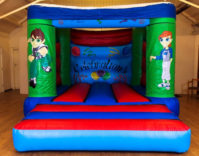 This Ben 10 bouncy castle is popular with both boys and has Ben 10 on one side and Gwen on the other side.. Perfect for any birthday, event or just a get together... Comes complete with pegs, blower and mats and if needed, a rain cover. Also ideal for indoor use.