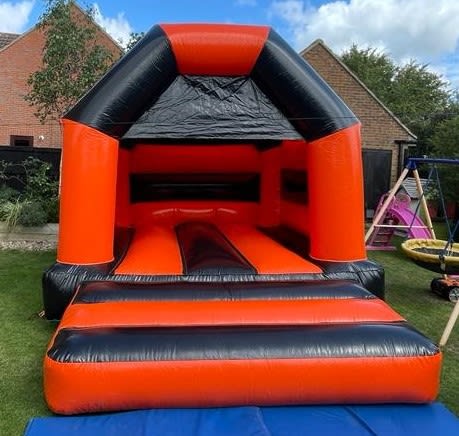 Introducing the Shiny Orange & Black Bouncy Castle, a vibrant and exciting addition to our extensive range of inflatables at Wobble World. This bouncy castle is perfect for those looking to add a splash of color to their special occasion.