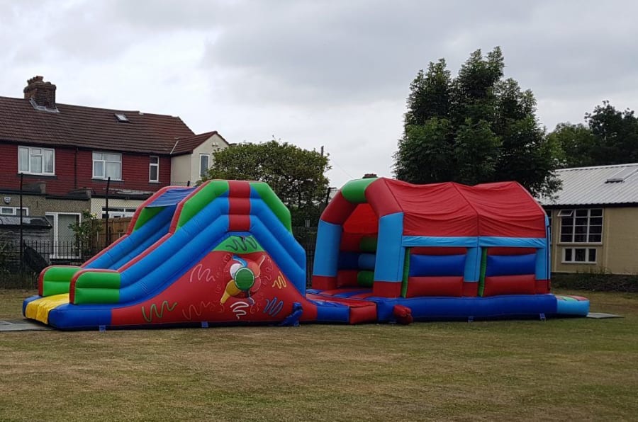 The whole set up includes pegs, mats, a blower, rain cover and all the necessary equipment to ensure a safe and secure set up.